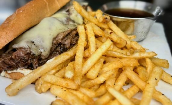 POT ROAST FRENCH DIP // $16.99 slow roasted pot roast smothered in gravy and topped with swiss cheese; served on a hoagie with horseradish aioli.