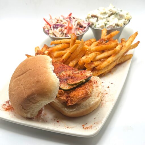 nashville style chicken breast dunked in the nashville drip over southern style potatoes and house-made sausage gravy; served with two OM eggs […]