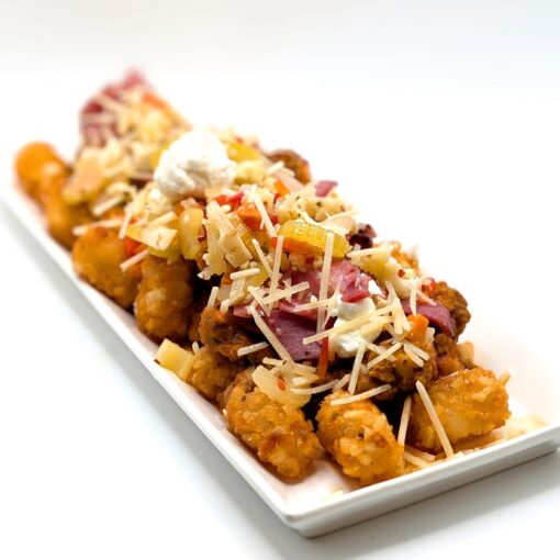 parmesan, garlic and truffle tots smothered in house-made giardiniera, italian sausage marinara, parmesan cheese and salami and topped with ricotta.