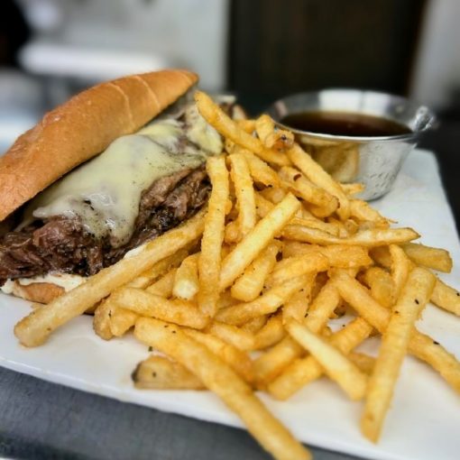 slow roasted pot roast smothered in gravy and topped with swiss cheese; served on a hoagie with horseradish aioli.