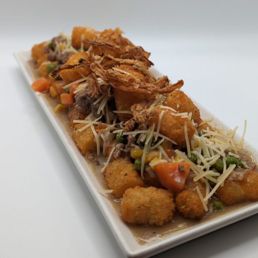 traditional pulled corned beef over boiled cabbage and potatoes; served with horseradish aioli.