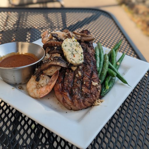 grilled ny strip topped with portabella mushrooms and garlic butter shrimp; served over mashed potatoes and lemon green beans with a side […]