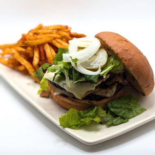 ROYALE WITH CHEESE | two 1/3 pound wood-grilled patties, topped with american cheese, lettuce, pickle, onion and 1000 island; served with cluck […]