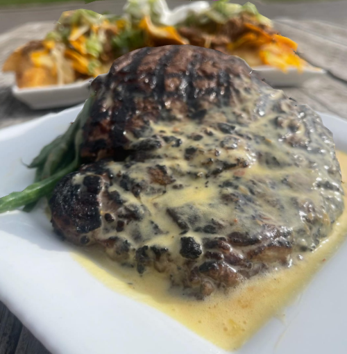 wood-grilled creole seasoned ny strip topped with melted bleu cheese crumbles; served over horseradish mashed potatoes and wood-grilled asparagus.add 5 wood-grilled shrimp […]