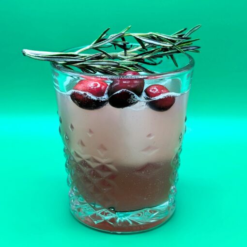 empress elderflower rose gin, tattersall crème de fleur, cranberry juice and fresh lime juice; garnished with charred rosemary and fresh cranberries.
